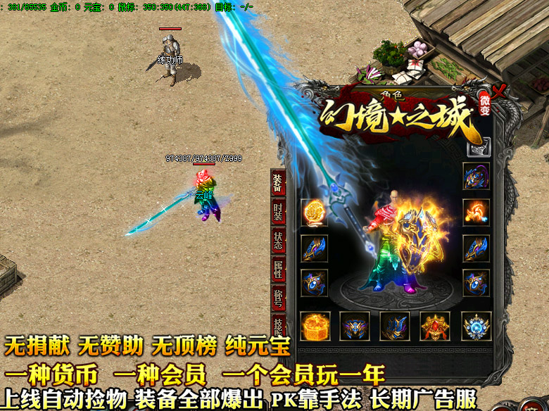 | >>2025年幻境★之城微变重金聘请资深游戏策划! >>等级好升,所有玩家等级无差别 >>货币就是元宝可自由兑换比特币,装备只能靠打。PK看手法 >>游戏活动多多。无垃圾无用活动,请大家务必参加 >>本服330级满级,泡点到300级后无法获得经验,后期手动升级 >>玩家可以免费白嫖到顶、无测试区赠送、随时充值比例都一样。 >>本服特殊装备都用金刚石合成,金刚石只能通过打怪获得 >>开区第二天下午合区第三天集体拿沙奖励6000比特币,后每天3000比特币 >>每天开放6个新区,开放时间公布于网站下放 >>游戏采用市场高端封挂软件,封挂效果可达99%绝对做到公开公平公正 >>给广大散人提供一个良好、长期、稳定的游戏环境! |